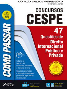 Como passar em concursos CESPE: direito empresarial: 204 questões de direito empresarial Nota: 0 de 5 estrelas0 notasComo passar concursos CEBRASPE -Direito Constitucional e Eleitoral Nota: 0 de 5 estrelas0 notasComo Passar em Concursos de Delegado: 2.000 questões comentadas Nota: 0 de 5 estrelas0 notasComo passar na OAB 1ª Fase: direitos humanos: 90 questões comentadas Nota: 0 de 5 estrelas0 notasAnálise econômica do Direito: os fatores de inflexão do Poder Judiciário Nota: 0 de 5 estrelas0 notasPrecedentes Vinculantes na Justiça do Trabalho: uma análise da sua formação sob o aspecto democrático Nota: 0 de 5 estrelas0 notasComo passar OAB – Direito do Trabalho Nota: 0 de 5 estrelas0 notasComo passar na OAB 1ª Fase: filosofia do direito: 70 questões comentadas Nota: 0 de 5 estrelas0 notasComo passar OAB - Direito Administrativo Nota: 0 de 5 estrelas0 notasSuper-Revisão OAB Doutrina - Direito Processual Penal Nota: 0 de 5 estrelas0 notasDireito Eleitoral Para Concursos Nota: 0 de 5 estrelas0 notasRonald Dworkin e a teoria do Direito: O direito em desacordo Nota: 0 de 5 estrelas0 notasComo passar na OAB 1ª Fase: direito do trabalho: 230 questões comentadas Nota: 5 de 5 estrelas5/5Um Panorama Contemporâneo Do Direito Internacional Dos Direitos Humanos Nota: 0 de 5 estrelas0 notasComo passar na OAB 1ª Fase: direito constitucional: 400 questões comentadas Nota: 5 de 5 estrelas5/5Como passar na OAB 1ª Fase: direito civil: 385 questões comentadas Nota: 5 de 5 estrelas5/5Vade Mecum Policial: Legislação selecionada para carreiras policiais Nota: 5 de 5 estrelas5/5Super-Revisão OAB Doutrina - Ética Nota: 0 de 5 estrelas0 notasComo passar na OAB 1ª Fase: direito internacional: 80 questões comentadas Nota: 0 de 5 estrelas0 notasSaber Direito - Volume 2: tratado de Filosofia Jurídica Nota: 0 de 5 estrelas0 notasGuia politicamente incorreto da escravidão ao juro Nota: 0 de 5 estrelas0 notasAnálise econômica do processo civil Nota: 0 de 5 estrelas0 notasArbitragem e Resoluções Extrajudiciais de Conflitos Trabalhistas após o advento da Lei 13.467/17 Nota: 5 de 5 estrelas5/5Como Defender Os Direitos Humanos Diante Dos Modernos Discursos Sensacionalistas Nota: 0 de 5 estrelas0 notasDireito, Economia e Filosofia: Uma Homenagem ao Jurista Ives Gandra Martins Nota: 0 de 5 estrelas0 notasSaber Direito - Volume 1: tratado de Filosofia Jurídica Nota: 0 de 5 estrelas0 notasManual Completo de Direito Civil Nota: 0 de 5 estrelas0 notasFundamentos do Direito Nota: 0 de 5 estrelas0 notas