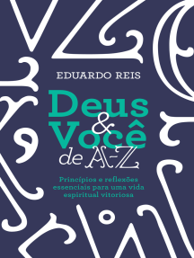 Nas últimas décadas, meu estimado amigo e irmão Eduardo Reis tem dedicado sua vida a viajar pelo Brasil e pelo mundo desenvolvendo um precioso trabalho de ensino que tem abençoado a vida de milhares de pessoas. Deus e você de A-Z é um exercício prático e proveitoso que demonstra aos leitores que o Criador se revela em todas as coisas, em todos os atos e em todos os tempos. Deus é o verdadeiro Autor da vida, e por suas linhas lidamos diariamente com nossa própria humanidade.