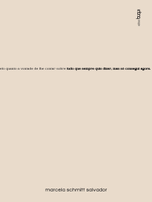 Tenho um abraço para te dar Nota: 5 de 5 estrelas5/5Exílio Nota: 0 de 5 estrelas0 notasCom ódio meu querido e eterno desconhecido Nota: 0 de 5 estrelas0 notasDespido e Desfocado Nota: 0 de 5 estrelas0 notasComo escolhi dizer Te Amo Nota: 0 de 5 estrelas0 notasQuantic Love: o romance que resolve a equação do amor Nota: 0 de 5 estrelas0 notasO (caos) que você me trouxe Nota: 5 de 5 estrelas5/5Não Levo Saudade Nota: 5 de 5 estrelas5/5Um poema para cada vez que você partiu meu coração Nota: 0 de 5 estrelas0 notasVida, Amor e Morte Nota: 0 de 5 estrelas0 notasSelma e Sinatra Nota: 0 de 5 estrelas0 notasEste post precisou ser removido Nota: 0 de 5 estrelas0 notasPoesia Sombria Nota: 0 de 5 estrelas0 notasO mundo me deve: memórias Nota: 5 de 5 estrelas5/5Para o homem descansando ao meu lado Nota: 0 de 5 estrelas0 notasAglomerados Nota: 0 de 5 estrelas0 notasTentativas de capturar o ar Nota: 0 de 5 estrelas0 notasP.S. Estarei aqui em palavras Nota: 0 de 5 estrelas0 notasTudo que eu pensei mas não falei na noite passada e Do amor e outras brutalidades Nota: 0 de 5 estrelas0 notasLoucas de Pedra: as loucuras que elas fazem e eles adoram Nota: 5 de 5 estrelas5/5Anatomia da noite Nota: 0 de 5 estrelas0 notasToda forma de amor Nota: 0 de 5 estrelas0 notasVERSO SOBRE VERSO Nota: 0 de 5 estrelas0 notasO quarto fechado Nota: 0 de 5 estrelas0 notasA Marca Na Parede, Por Virginia Woolf Nota: 0 de 5 estrelas0 notasOlhando a vida de pernas pro ar Nota: 0 de 5 estrelas0 notasListrinhas De Amor Nota: 0 de 5 estrelas0 notasDescobertas: A culpa é sempre das outras Nota: 0 de 5 estrelas0 notasRock Star Nota: 0 de 5 estrelas0 notas